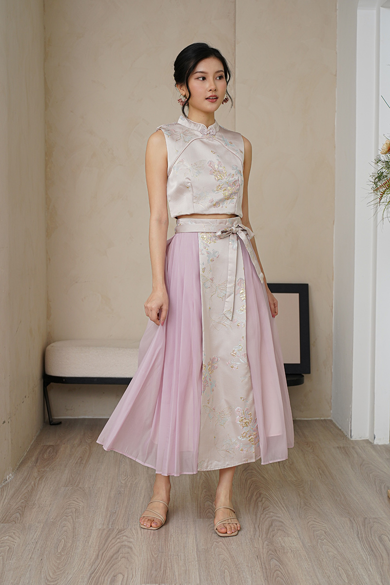 FairyTulle Realm Silk Embroidered Chinoise Top Pink